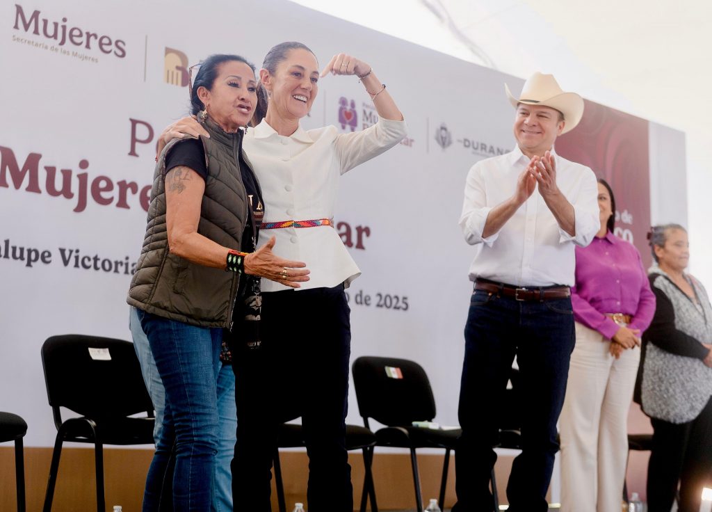 Guadalupe Victoria, Durango. La Presidenta de la República, Claudia Sheinbaum Pardo, encabezó en este municipio, la entrega de la Pensión Mujeres Bienestar, un programa dirigido a mujeres de 60 a 64 años, anunció también la implementación de dos nuevas estrategias: la Beca Rita Cetina Gutiérrez para estudiantes de escuelas públicas y el programa Salud Casa por Casa para la atención médica de adultos mayores.