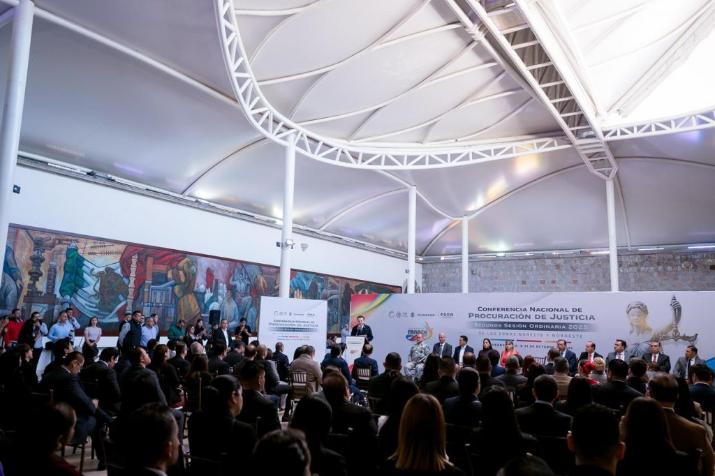 Ante fiscales de Tamaulipas, Sonora, Coahuila, Nuevo León, San Luis Potosí, Zacatecas, Baja California, Chihuahua y Sinaloa, el gobernador agradeció la participación en esta Segunda Sesión Ordinaria 2025, que tiene como objetivo sumar esfuerzos para afrontar los desafíos actuales y futuros con legalidad, justicia y apego a los derechos, con la determinación que siempre caracteriza a todas las fiscalías.