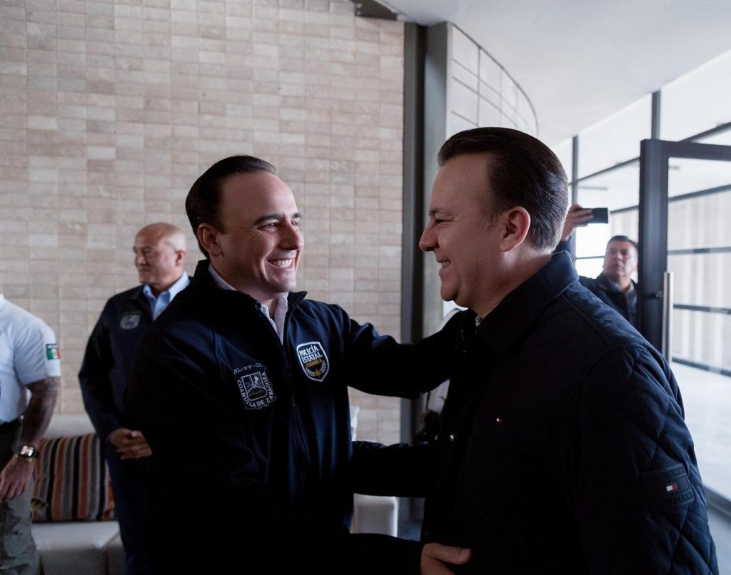 Torreón, Coahuila.- El gobernador Esteban Villegas Villarreal se reunió con el gobernador de Coahuila, Manolo Jiménez Salinas, durante la Reunión de Seguridad en la Región Laguna, con el grupo de Coordinación Operativa, para reforzar la colaboración entre ambas entidades. Se acordó trabajar con un esquema de coordinación más ágil, mejorar el intercambio de información, afinar protocolos conjuntos y fortalecer la operación en las zonas limítrofes para prevenir y atender riesgos de manera más efectiva.