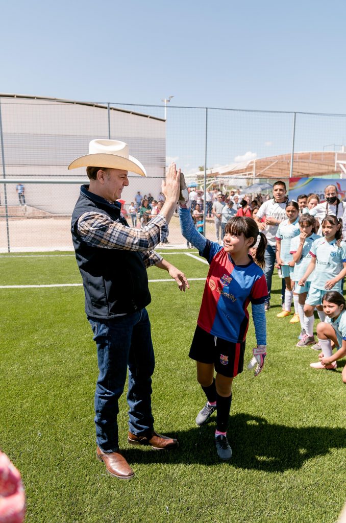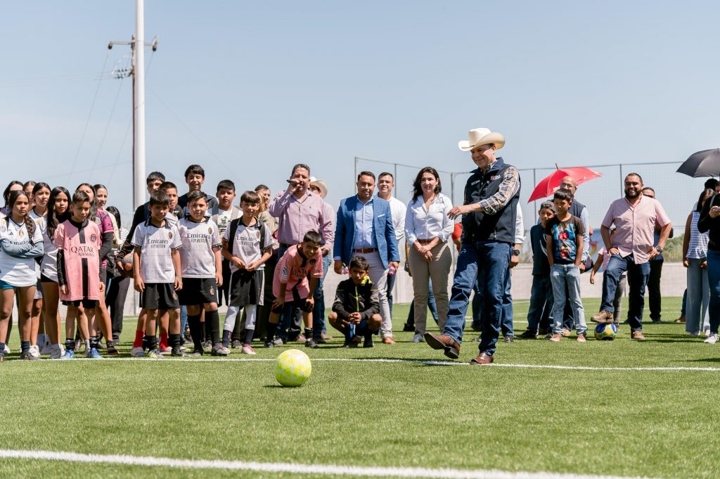 En la inauguración, Villegas Villarreal dio la patada inicial y anunció la entrega de uniformes al equipo femenil como muestra de apoyo al deporte. Por su parte, el joven Azuar Álvarez Favela, beneficiario de la obra, destacó que esta cancha “no es solo una obra más, es un sueño cumplido”, y agradeció el respaldo al deporte local.