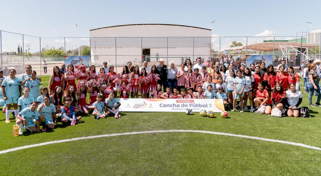 Cuencamé, Dgo.— Ahora las y los jóvenes de Cuencamé cuentan con un espacio moderno, seguro y digno para entrenar, competir y convivir, gracias a la nueva cancha de Futbol 7 que fue inaugurada por el gobernador Esteban Villegas Villarreal y la presidenta municipal Norma Elizabeth Sotelo Ochoa. Con una inversión superior a los 3.1 millones de pesos, esta infraestructura deportiva incluye pasto sintético, drenaje pluvial, porterías y bancas, y forma parte del esfuerzo para fomentar el deporte, la salud y la integración social en el municipio.
