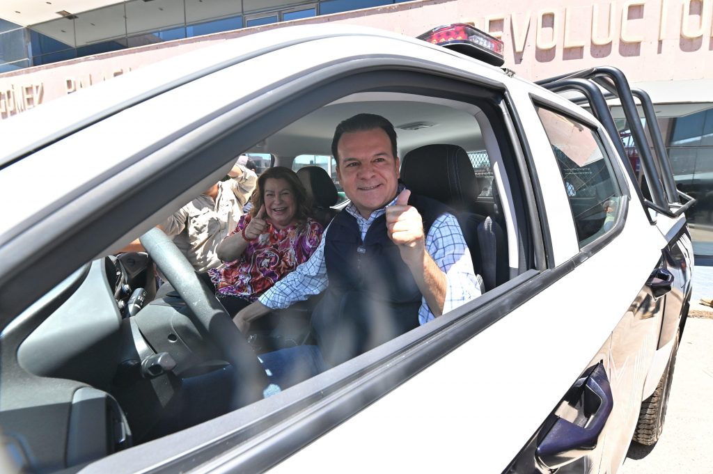 Gómez Palacio, Dgo.– Para fortalecer la seguridad y mejorar la atención a emergencias, el gobernador Esteban Villegas Villarreal y la presidenta municipal Leticia Herrera Ale entregaron cuatro patrullas a la Dirección de Seguridad Pública y una unidad de rescate a Protección Civil en Gómez Palacio.