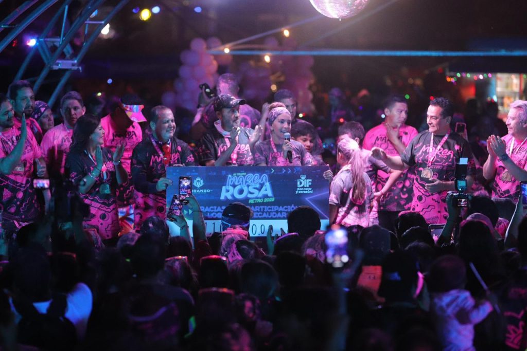 Durango se pintó de rosa con la Marea Rosa Retro 2025, que reunió a más de 11 mil participantes en una carrera llena de color, música y alegría, encabezada por el gobernador Esteban Villegas Villarreal, la presidenta del DIF Estatal, Marisol Rosso Rivera, y el presidente municipal, Toño Ochoa. En un ambiente de unidad y entusiasmo, se recaudó un millón 100 mil pesos que serán destinados a fortalecer la atención y acompañamiento a mujeres que enfrentan el cáncer de mama con un área de cuidados paliativos en la Clínica Integral de la Mujer.